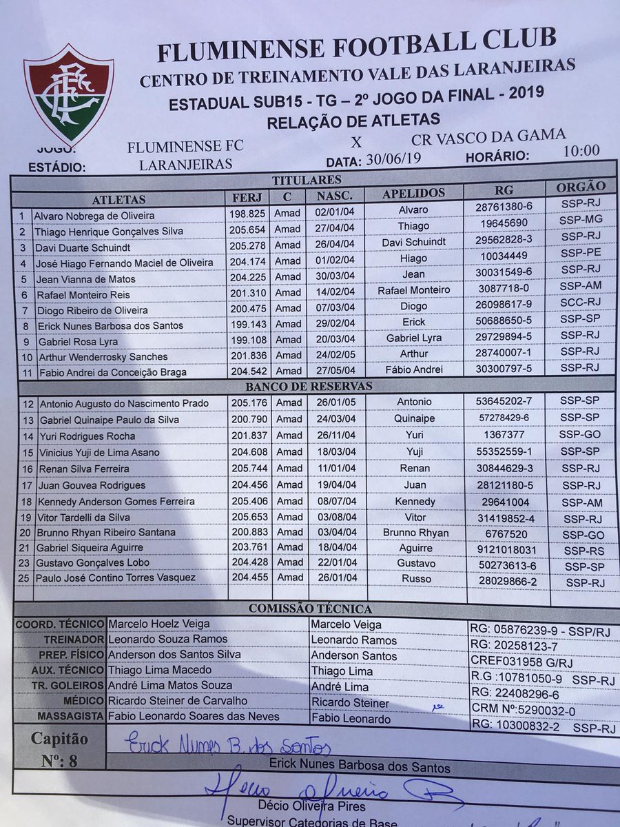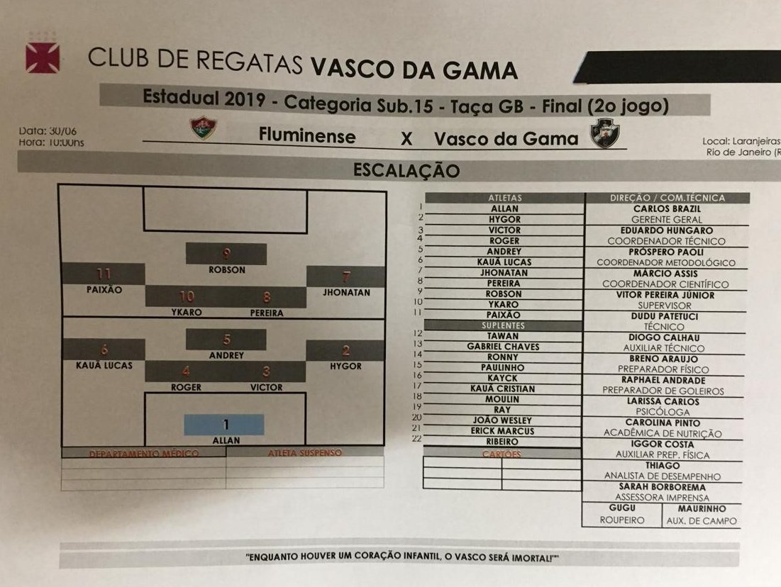 Infantil: Confira escalações de Fluminense e Vasco para a final da Taça Guanabara