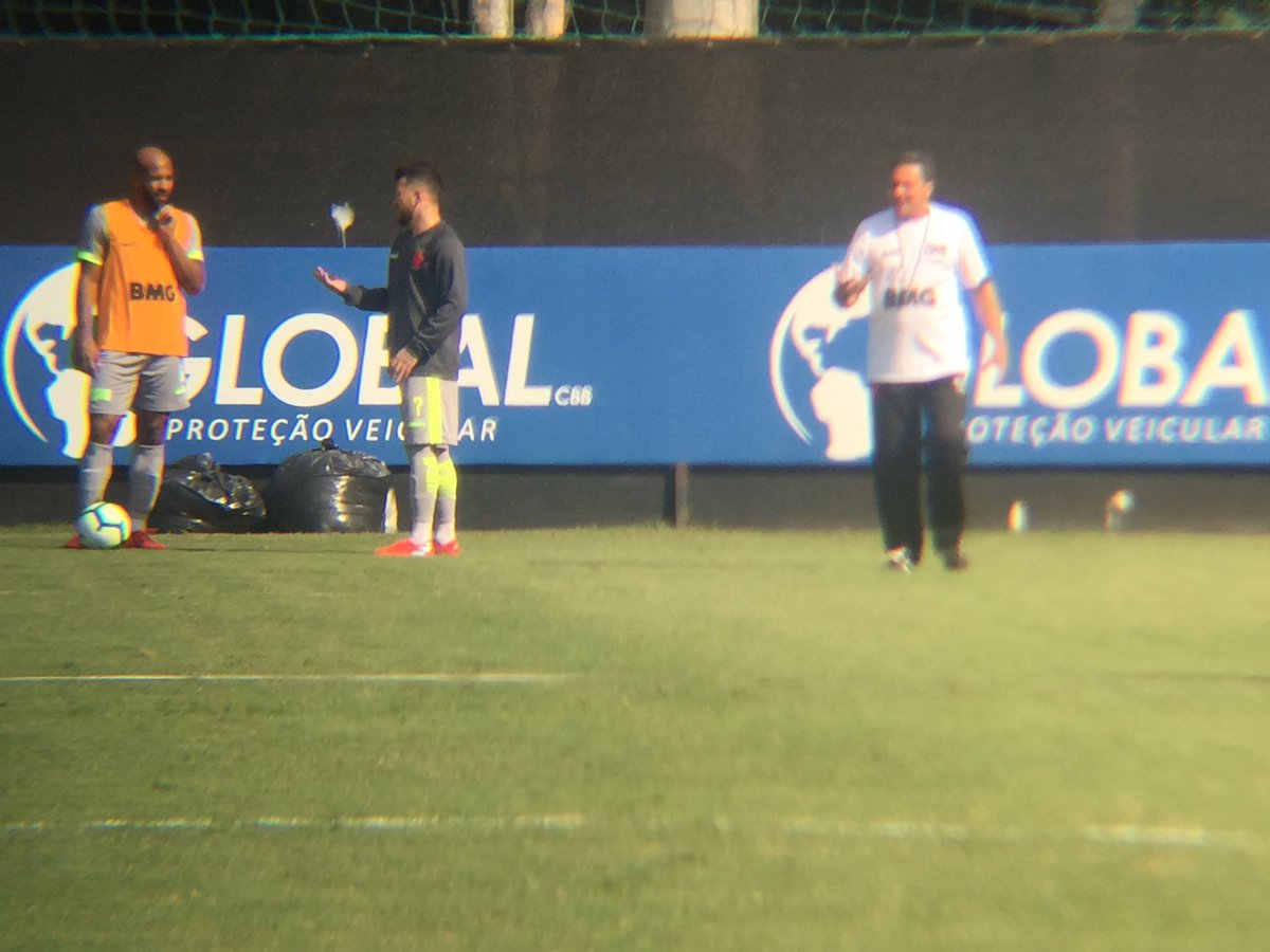 Time titular do Vasco no treino: Fernando Miguel; Pikachu, Henríquez, Ricardo e Danilo Barcelos; Richard, Raul, Marco Júnior e Marquinho; Marrony e Rossi #gevas