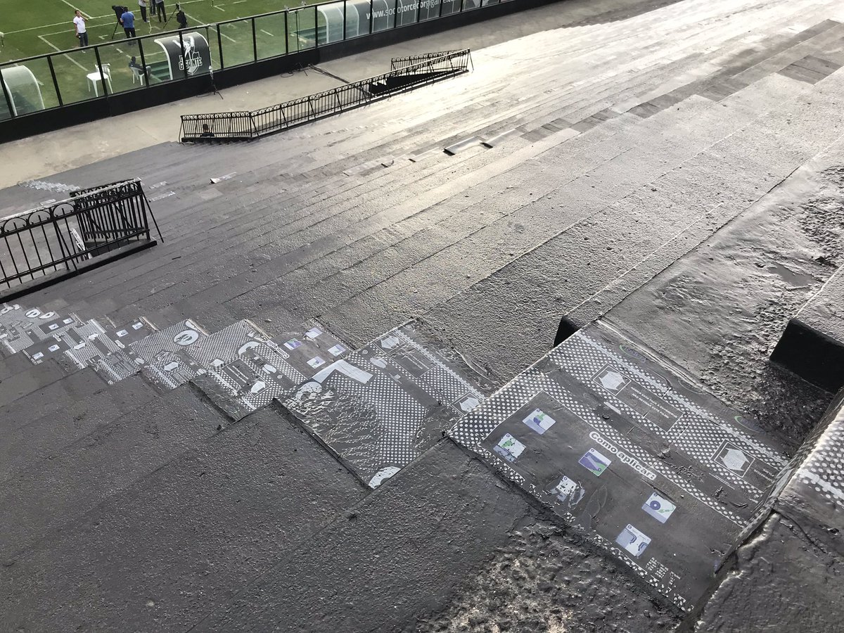 Vasco aproveitou o período sem jogos para fazer algumas obras estruturais em São Januário: arquibancada está sendo pintada (foto), cabines de estão recebendo retoques e há obras no portão de acesso pra arquibancada ali perto do portão 9