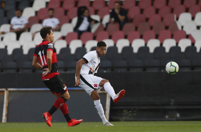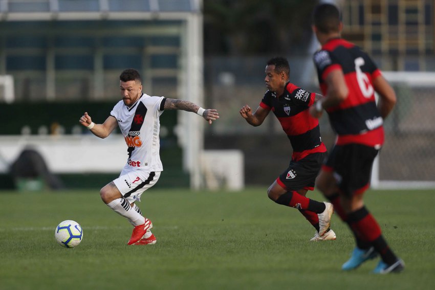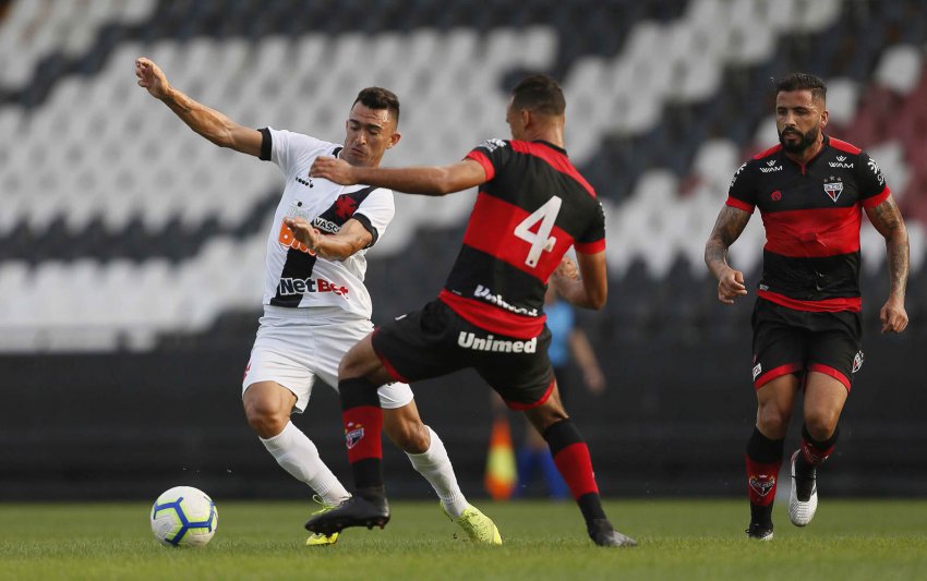 Só que o confronto diminuiu de ritmo e ficou concentrado entre as intermediárias. O Vasco continuava com mais posse de bola, mas sem objetividade. Já o Atlético-GO tentava encaixar os contra-ataque, sem sucesso.