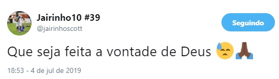 Fonte: Twitter do jogador Jairinho