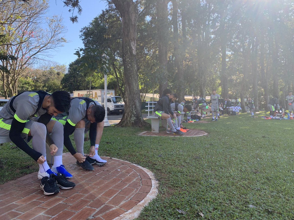 Jogadores iniciam a preparação para o treino no campo #gevas