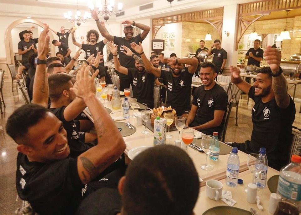 O aniversariante do dia Raul, recebeu um bolo na hora do jantar para comemorar o seu aniversário com os companheiros do Gigante da Colina. O volante está completando 23 anos nesta quinta-feira. Parabéns! ??