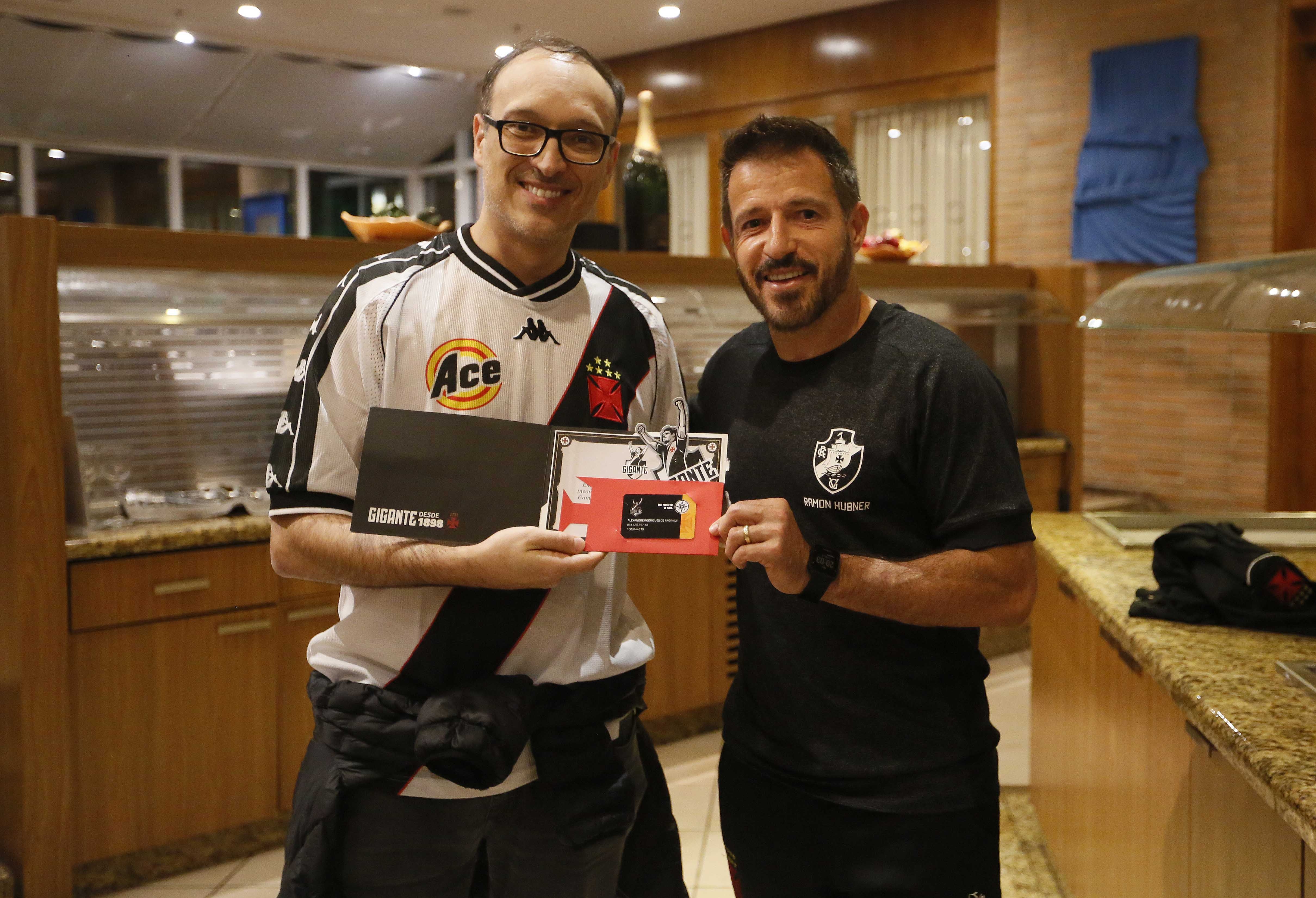 A noite desta sexta-feira (13/7), foi de muita felicidade e alegria para alguns membros do Sócio Gigante em Porto Alegre. Os associados vascaínos resgataram experiências e viveram momentos inesquecíveis com ídolos do Cruzmaltino, como o auxiliar técnico Ramon Menezes, que fez a entrega das carteirinhas para os novos sócios do Rio Grande do Sul e posou para fotos e autografou várias camisas.