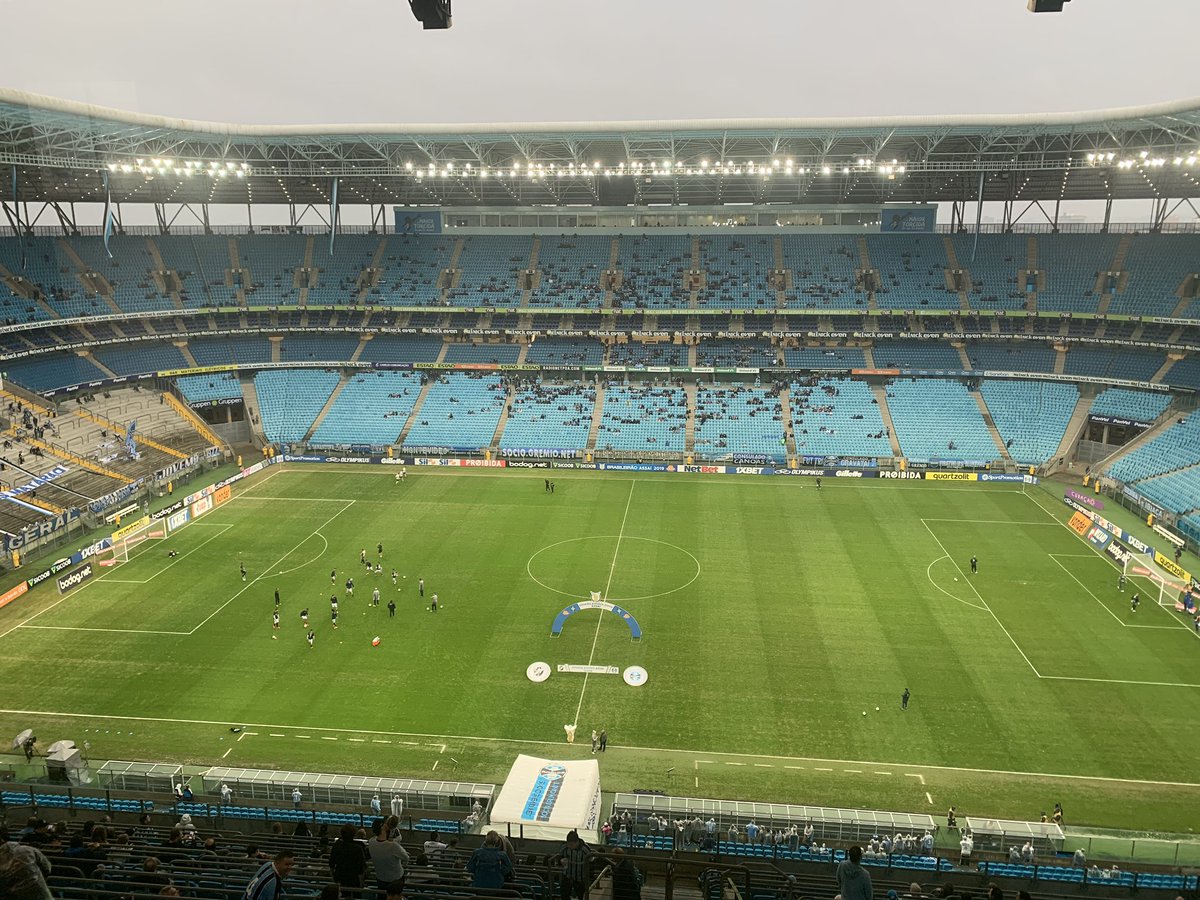 Jogadores do Vasco iniciam aquecimento na Arena do Grêmio; veja foto