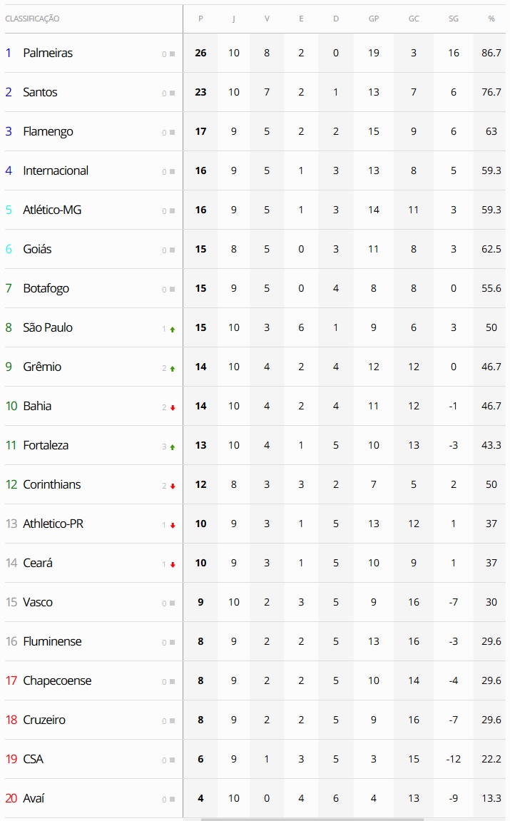 Após a derrota para o Grêmio, com direito a gol mal anulado pelo VAR, o Vasco termina o sábado na 15ª colocação do Brasileiro. Dependendo dos resultados de domingo e 2ª-feira, o Gigante da Colina pode finalizar a 10ª rodada na zona do rebaixamento.