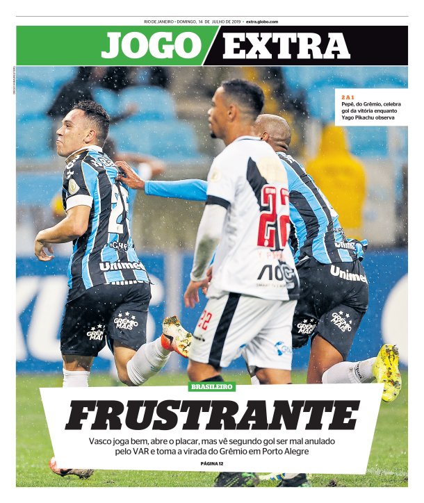 Pelo Campeonato Brasileiro, o Vasco foi derrotado por 2 a 1 pelo Grêmio no último sábado em Porto Alegre, em jogo em que acabou prejudicado pelo VAR. Veja como a imprensa repercutiu.