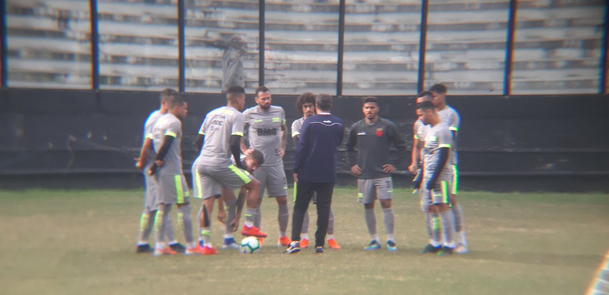 Luxemburgo agora conversa com o provável time. Na roda estao: Pikachu, Castán, Ricardo e Henrique; Raul, Richard e Marquinho; Marrony, Yan Sasse e Valdivia #gevas