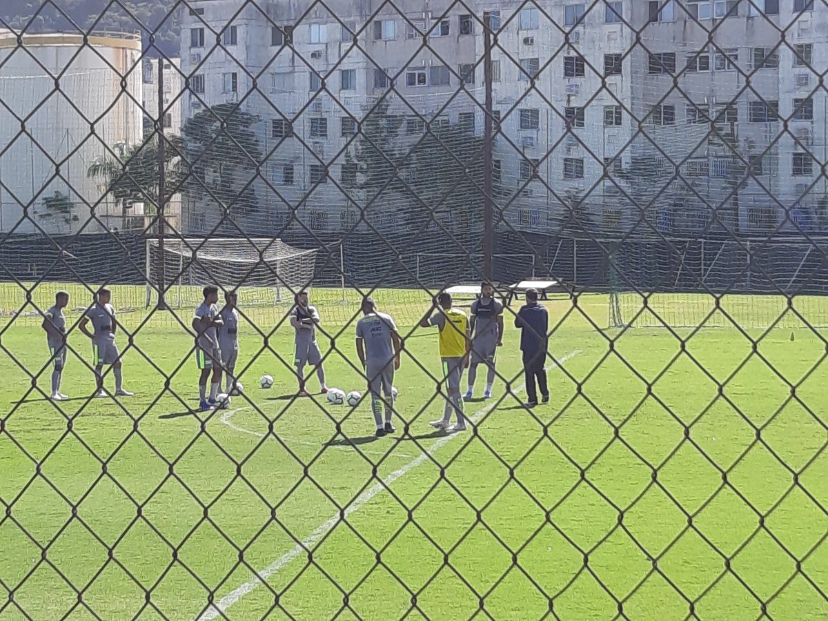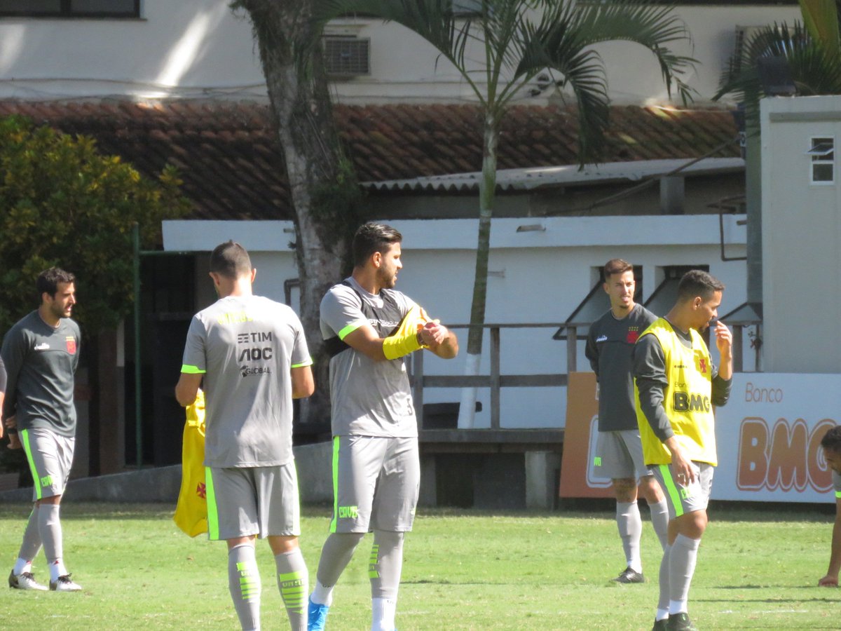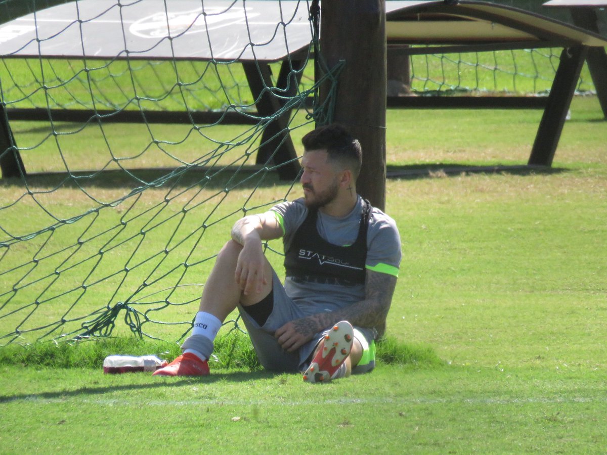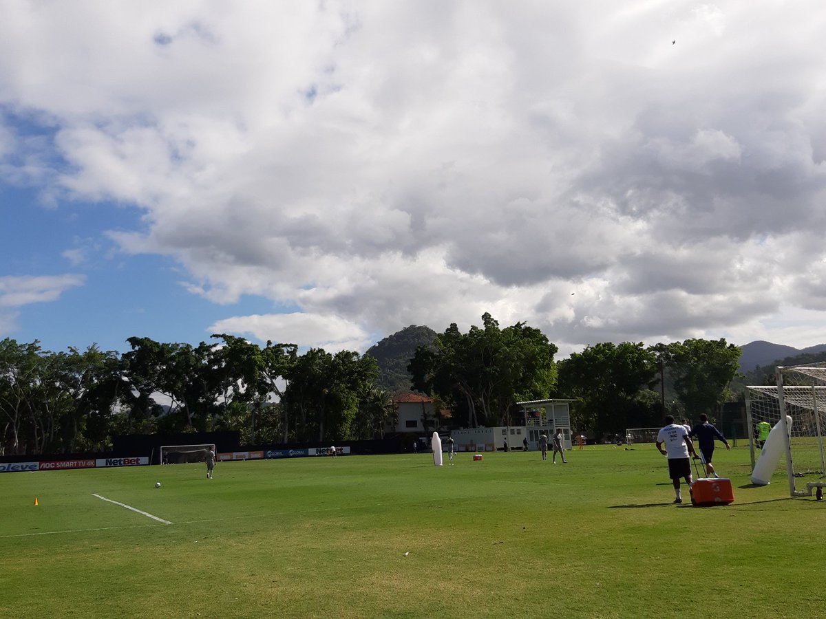 Rossi, suspenso contra o Fluminense, acompanha de longe o treino. #gevas