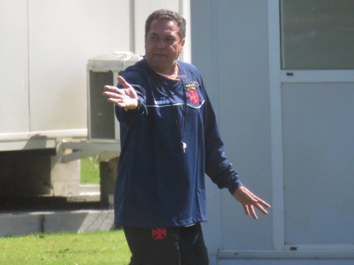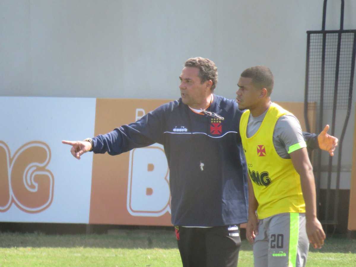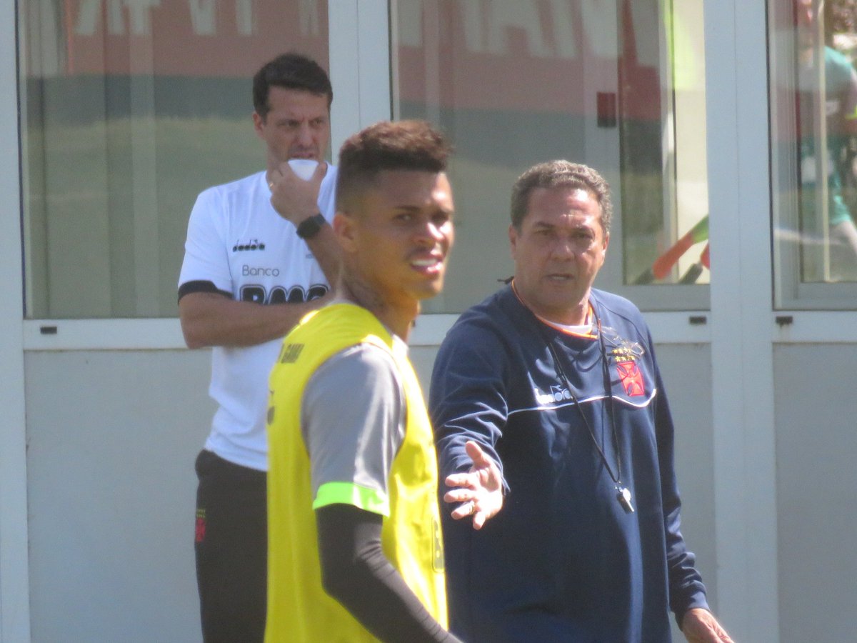 Luxemburgo acompanha o treino e orienta o tempo inteiro. Preocupação especial com a marcação vascaína no campo de ataque. #gevas