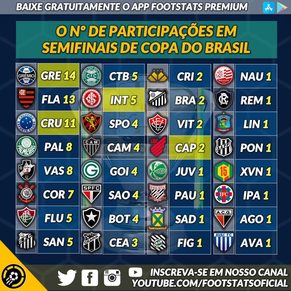 Grêmio é o recordista com 14 semifinais em 26 participações