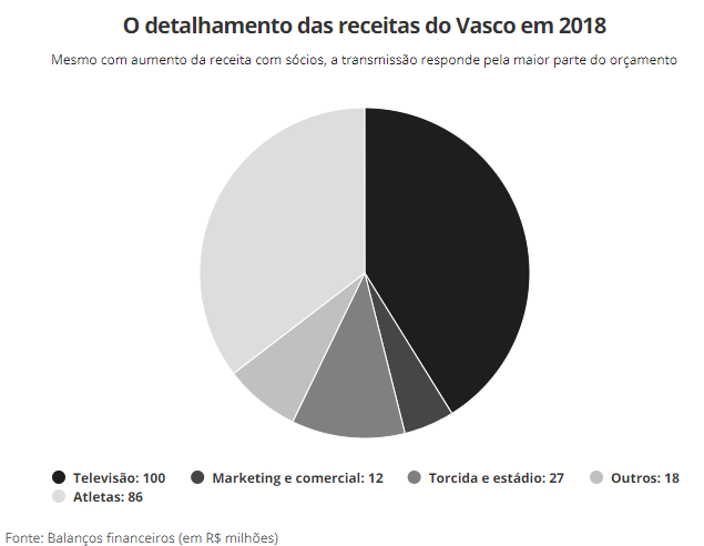 Esta é a história do Vasco que fechou 2018 com R$ 65 milhões em superavit. O dinheiro não ficou disponível nas contas cruzmaltinas. Nunca esteve. Superavit é a diferença entre receitas e despesas ao considerar um determinado período. Como o Vasco arrecadou mais do que gastou, terminou a temporada com lucro. E onde foi parar todo o lucro? Nos bancos que Eurico havia usado para antecipar, por meio de empréstimos, a verba da televisão. A realidade segue muito difícil.