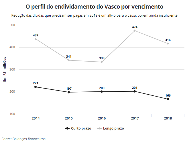 Receitas aumentaram por causa da venda do Paulinho, houve economia nos custos operacionais, dívidas foram reduzidas ou renegociadas para aliviar a situação. Outros indicadores apontam para a mesma direção. O Vasco também conseguiu no ano passado diminuir as suas dívidas de curto prazo, que precisarão ser pagas no decorrer de 2019.