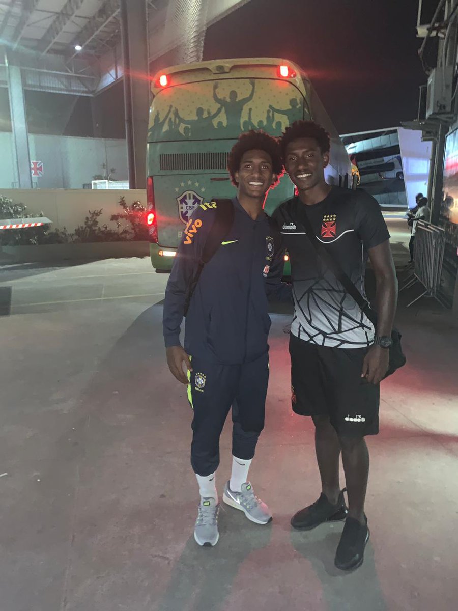 Após jogo da Seleção Sub-17, Talles Magno encontra o irmão Kaio, da base do Vasco, em São Januário