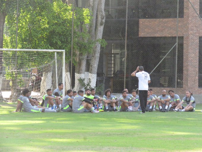 Boa tarde! Imprensa liberada no CT do Almirante. Titulares em campo para trabalho físico. Antes, Luxemburgo conversa com o elenco. #gevas