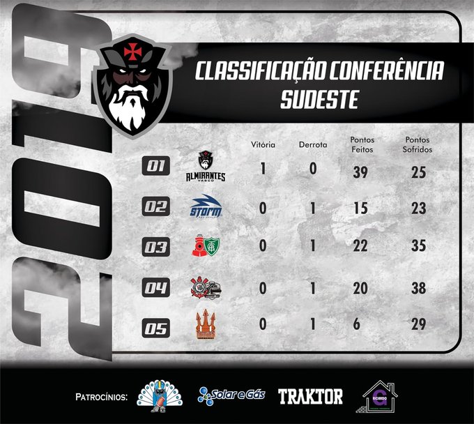 Futebol Americano: Vasco Almirantes lidera a Conferência Sudeste; veja classificação