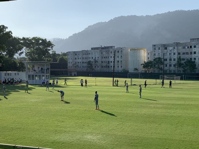 Começa o jogo-treino. Vasco escalado com: Fernando Miguel, Pikachu, Henríquez, Castan e Danilo Barcelos; Richard, Raul e Marquinho; Bruno César, Marrony e Talles #gevas