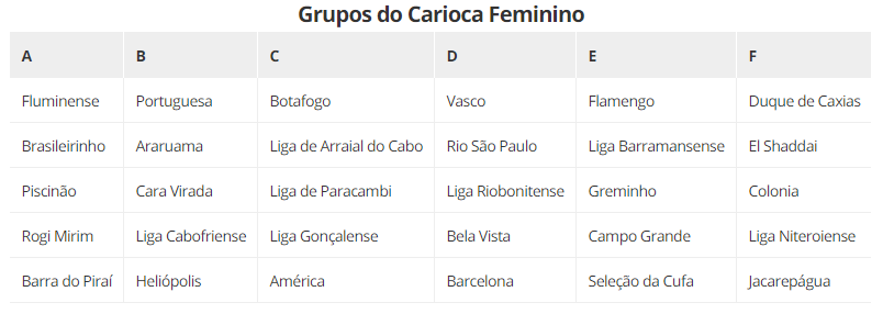 A FERJ sorteou os grupos do Campeonato Carioca de Futebol Feminino Profissional nesta quinta-feira. As Meninas da Colina estão no Grupo D, ao lado de Rio-São Paulo, Liga Riobonitense, Bela Vista e Barcelona. Os outros 3 grandes do Rio também estão confirmados na disputa.