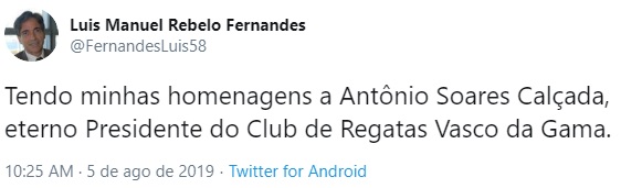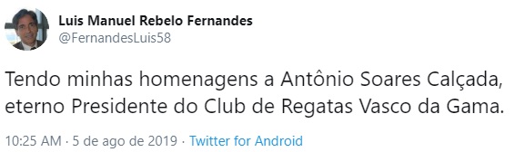 05/08/19 - Vasco publica nota de falecimento de Antônio Soares Calçada