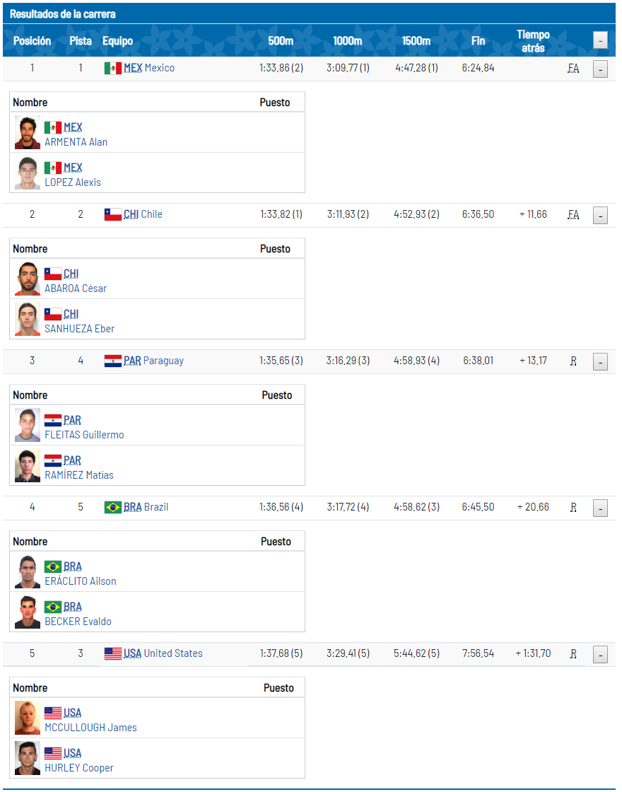 Remo: Com Alexis Lopez, Duplo Skiff Peso Leve do México fica em 1º na eliminatória do Pan de Lima