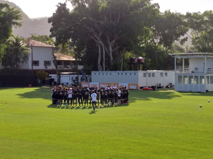 Jogadores fazem corrente e um minuto de silêncio antes do treino em homenagem ao ex-presidente Antônio Soares Calçada, que morreu nesta segunda-feira #gevas