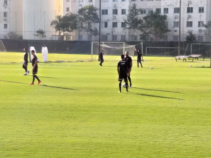 Em luto, os jogadores trocaram o uniforme de treino cinza pelo preto nesta terça-feira. A comissão técnica também está com símbolo de luto ao lado do escudo na camisa #gevas