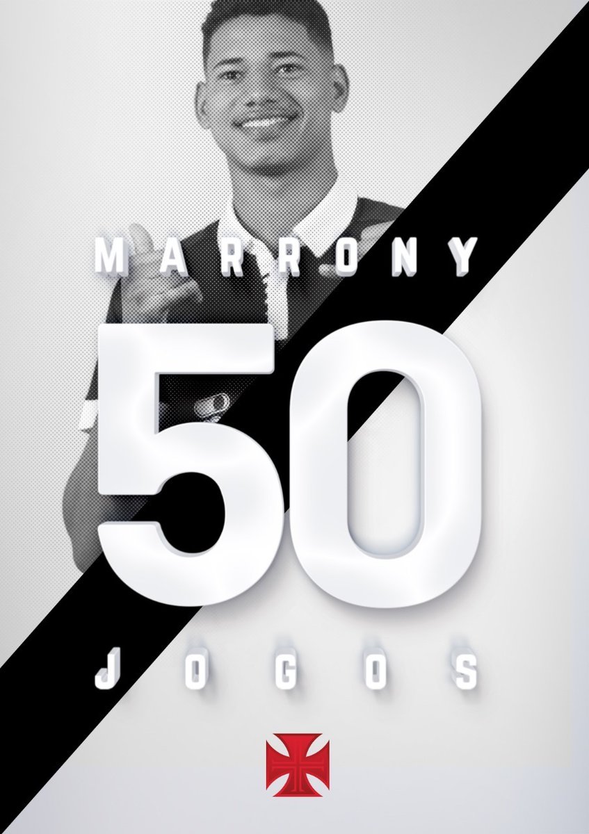 Vasco publica imagem em homenagem aos 50 jogos de Marrony pela equipe profissional