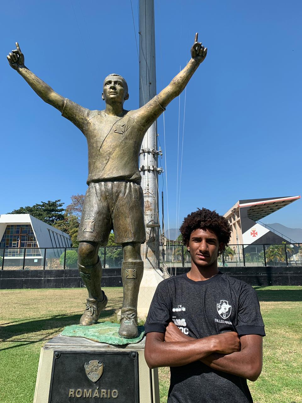Vasco publica foto de Talles Magno em frente à estátua de Romário: '#BaseForte ontem, hoje e sempre!'