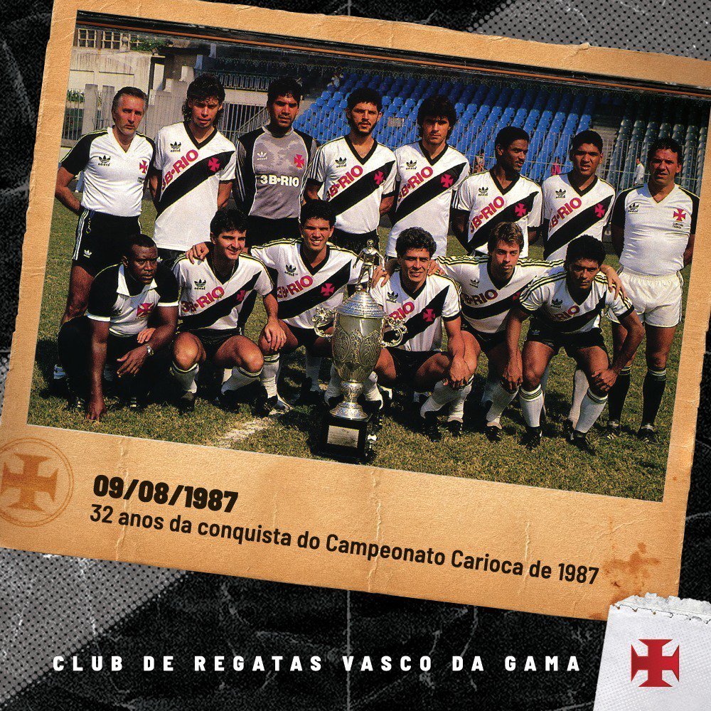 Vasco celebra, em rede social, os 32 anos da conquista do Campeonato Estadual de 1987