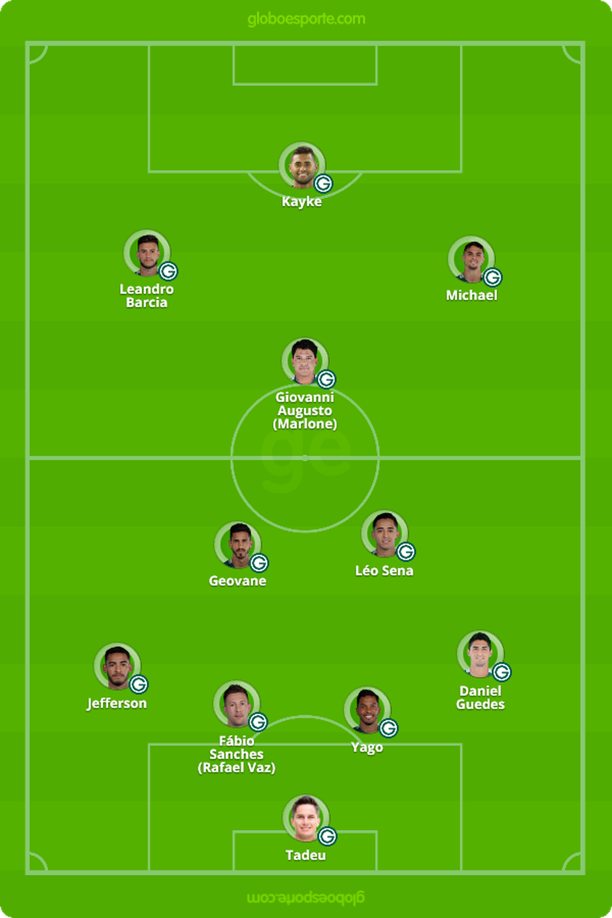 Apresentado na tarde de sexta-feira, Ney comandou um único treino, na manhã de sábado, com portões fechados. O treinador não deu pistas da escalação, mas é possível que ele barre Rafael Vaz. Fábio Sanches pode começar ao lado de Yago, que não enfrentou o Corinthians por força contratual. Marlone e Giovanni Augusto, que não atuaram em Itaquera pelo mesmo motivo, também voltam a ficar à disposição.