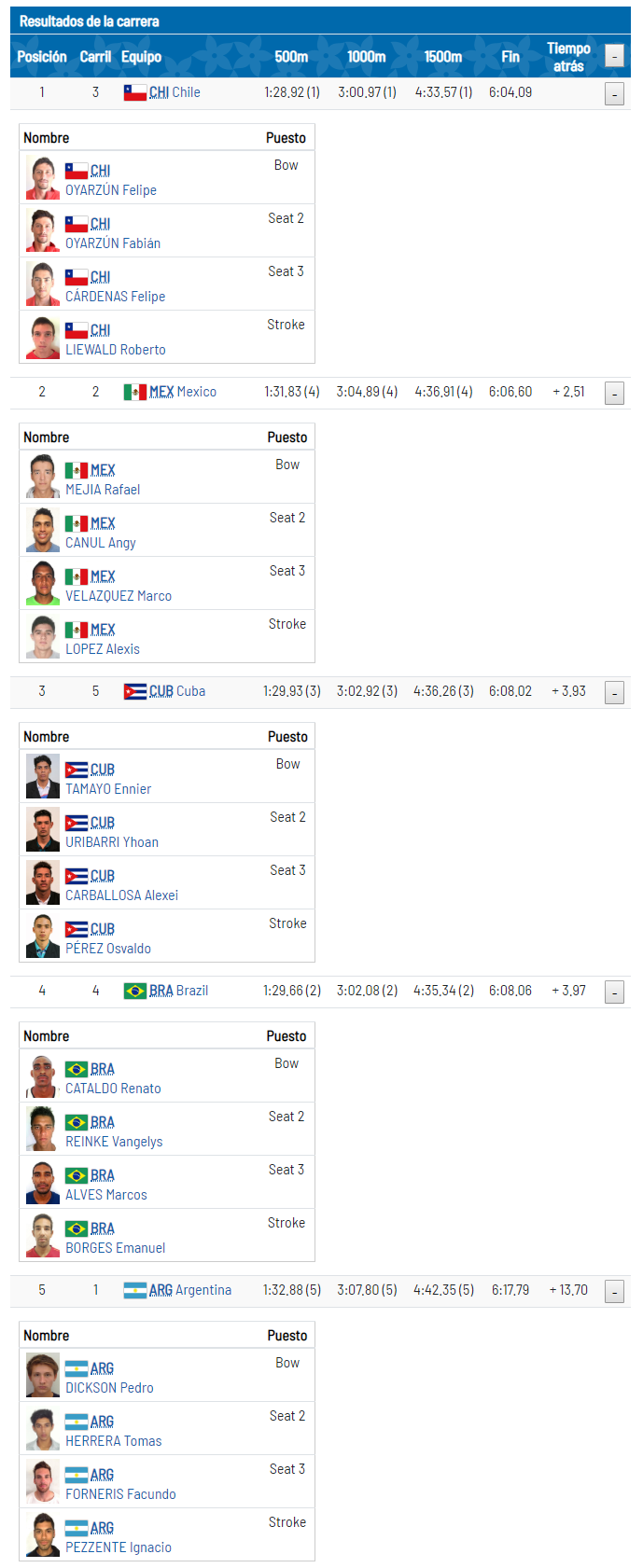 Fonte: NETVASCO (texto), Site oficial do Pan (resultado), Facebook da Federação Mexicana de Remo (foto)
