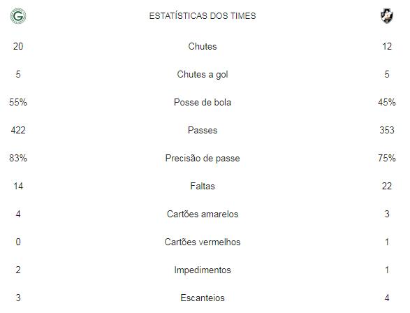 Confira as estatísticas de Goiás 0 x 1 Vasco