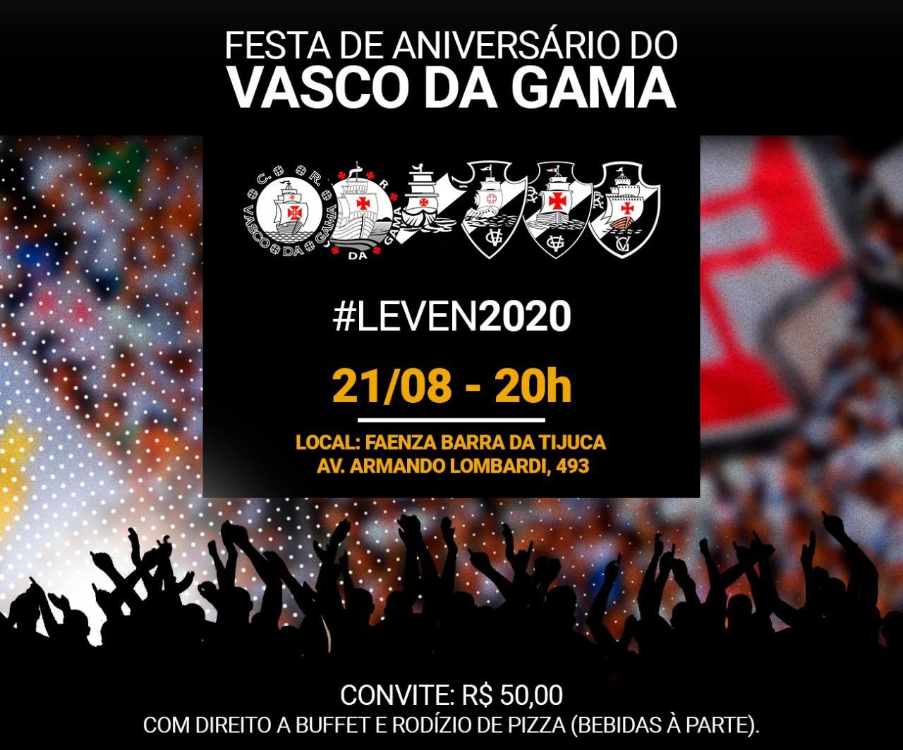 Assessoria de Leven Siano, pré-candidato do Vasco, informa sobre evento que ele fará em comemoração ao aniversário do clube