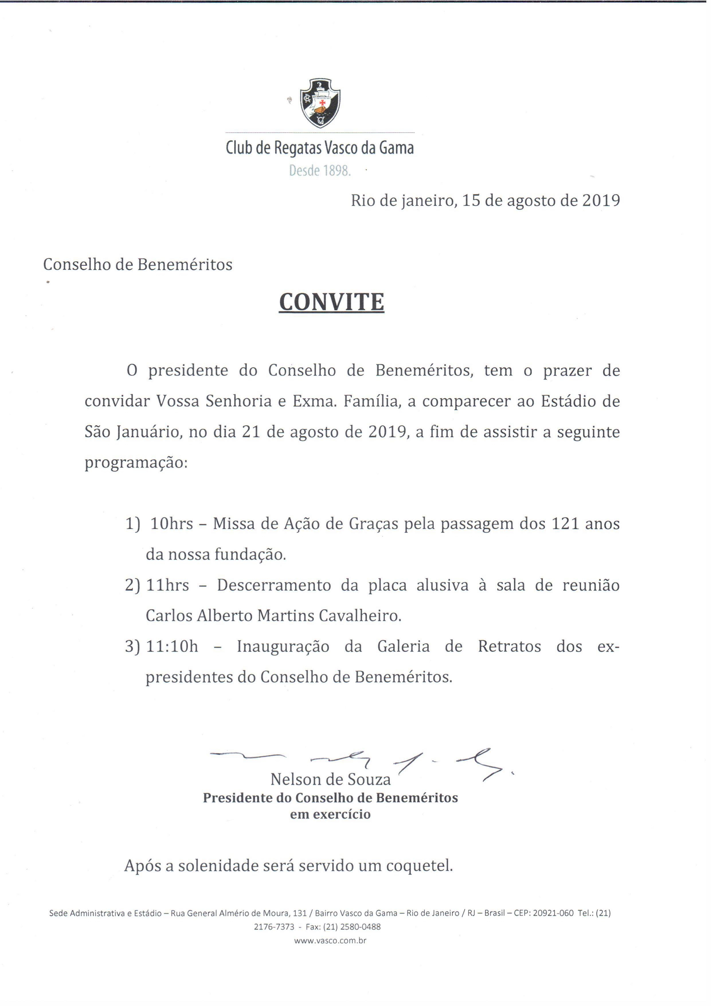 05/08/19 - Conselho de Beneméritos do Vasco divulga nota de pesar pelo falecimento de Antônio Soares Calçada