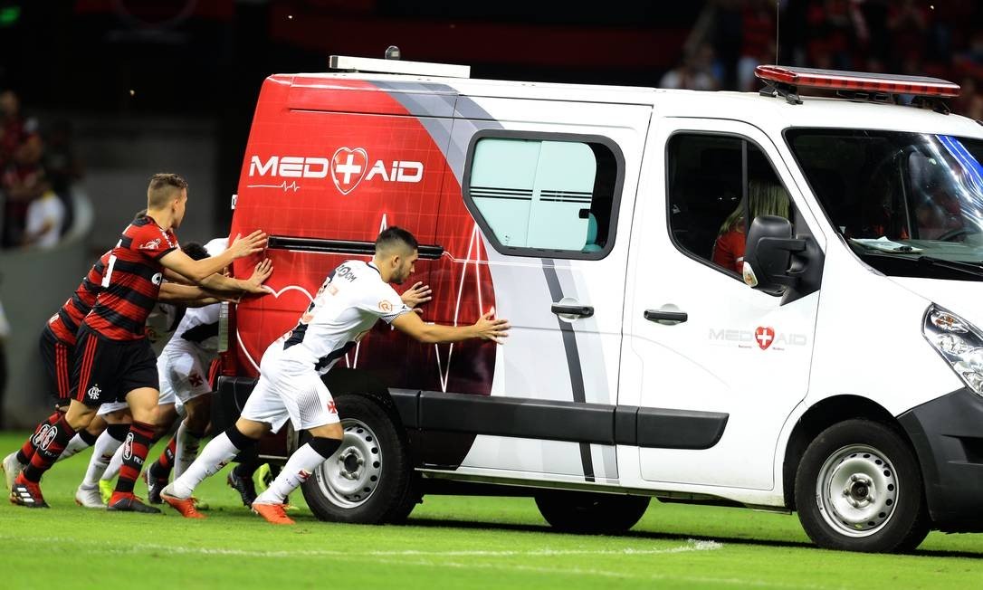 No Brasileiro de 2018, Vasco e Flamengo ficaram no empate em 1 a 1. Andrés Ríos marcou pelo Cruz-Maltino, e Luiz Gustavo, contra, deixou tudo igual. Mas o grande momento ficou por conta da ambulância do estádio Mané Garrincha, que teve que ser empurrada pelos jogadores após enguiçar no meio do gramado. Diego ainda seria expulso por reclamação ao longo da partida.