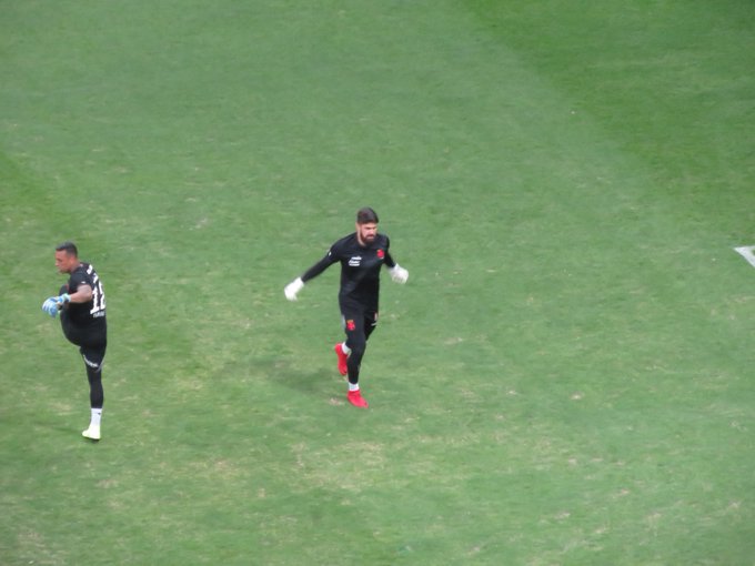 Fernando Miguel e Sidão se aquecem neste momento; veja foto