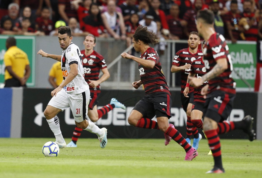 Mais presente no ataque, o Vasco voltou a ameaçar aos 31 minutos quando Talles arrancou em direção à área rubro-negra e bateu com grande perigo, mas a bola saiu.
