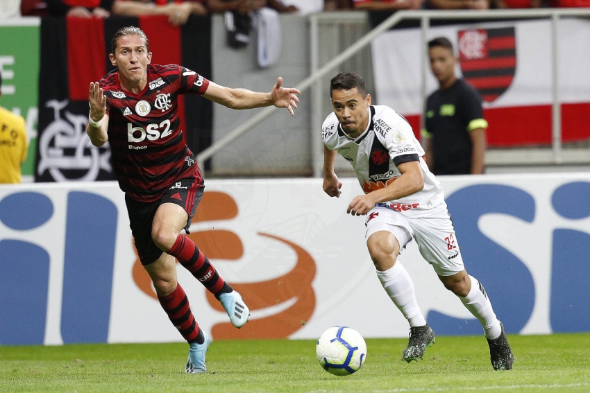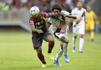 Aos 36 minutos, Marquinho vacilou e foi desarmado por Gerson que fez ótimo passe para Arrascaeta na área, mas a conclusão do uruguaio foi bloqueada por Cáceres.