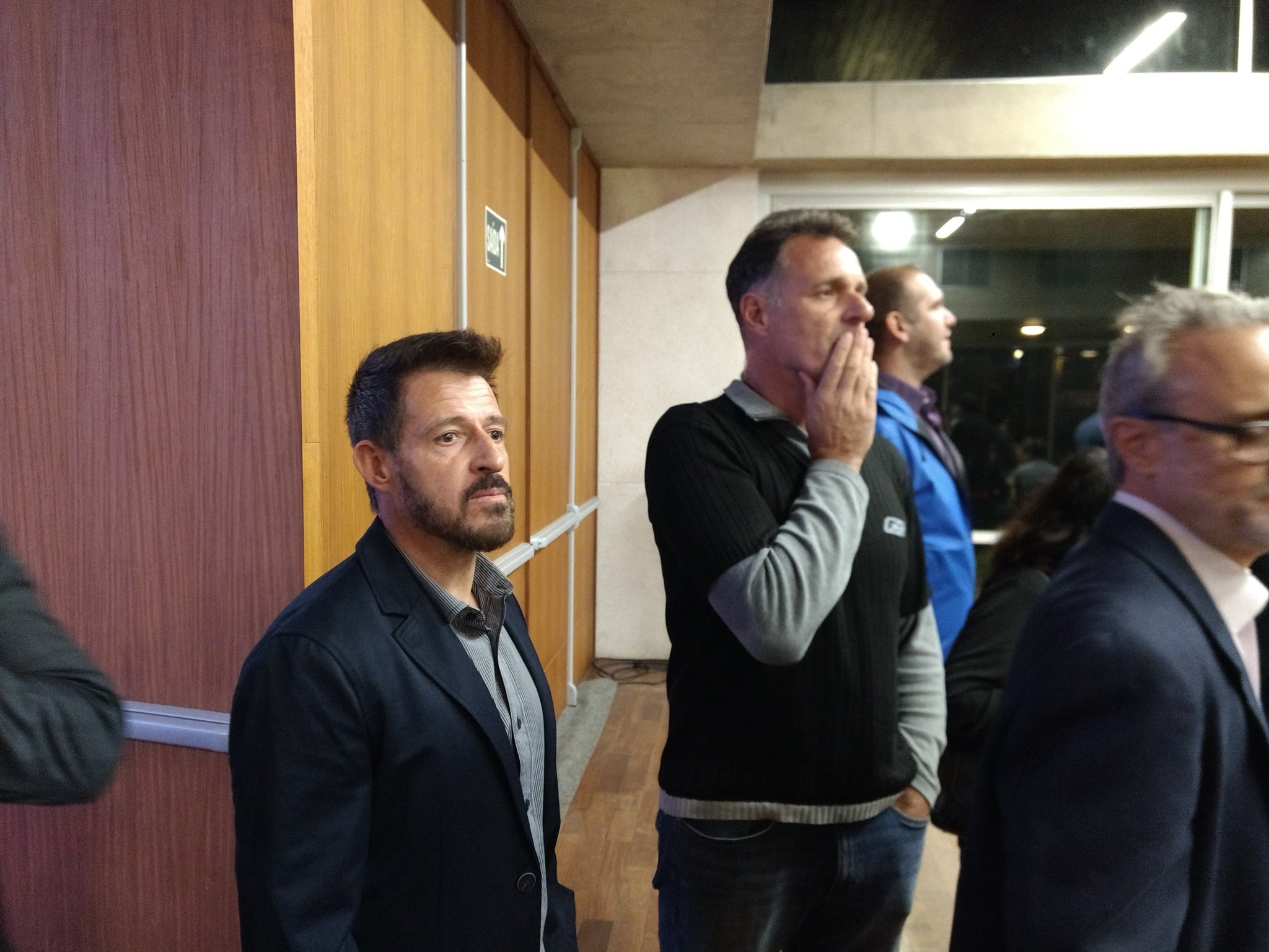 Campeões brasileiros, da Libertadores, do Estadual, do Torneio Rio-São Paulo pelo Vasco. Ramon e Carlos Germano chegam juntos ao auditório onde projeto do centro de treinamento será apresentado.