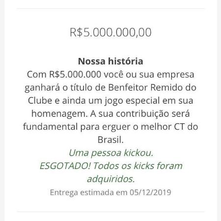 O UOL Esporte, então, resolveu esmiuçar as regras de doação do site "Kickante", que está hospedando a campanha. De cara, já se pode afirmar que o fato do portal indicar que uma pessoa acionou o valor de R$ 5 milhões não necessariamente quer dizer que ela efetuará o pagamento.