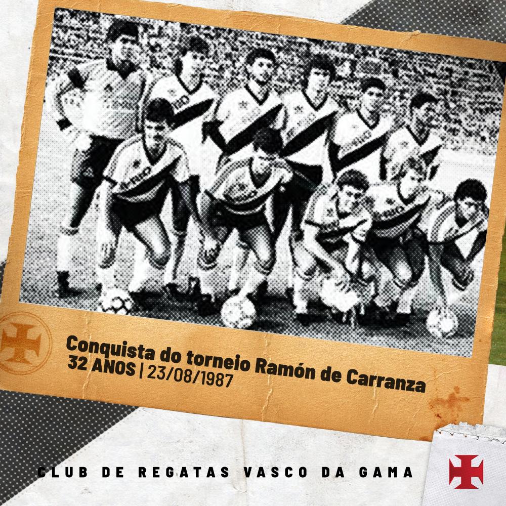 Há 32 anos conquistávamos o Ramón de Carranza! Tradicional torneio de verão organizado pelo Cádiz CF (??), a edição de 87 contou com o anfitrião, o Nacional-URU e o Sevilla. O #VascoDaGama, que seria tricampeão em 87/88/89, bateu o Sevilla na final (3x0). #CentrodeMemória