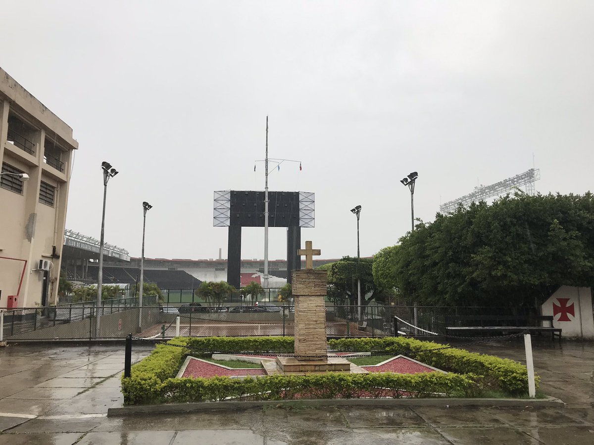 Boa tarde, pessoal. Muita chuva, mas estamos em São Januário para o treinamento do Vasco #lanceVAS