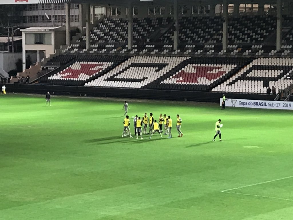 O time titular é o mesmo de ontem: Fernando Miguel, Pikachu, Henriquez, Castan e Henrique; Richard, Andrey, Raul e Marcos Junior; Talles e Marrony. #gevas
