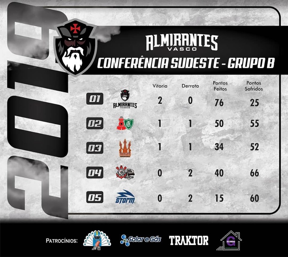 Futebol Americano: Vasco Almirantes lidera a Conferência Sudeste da BFA; veja classificação