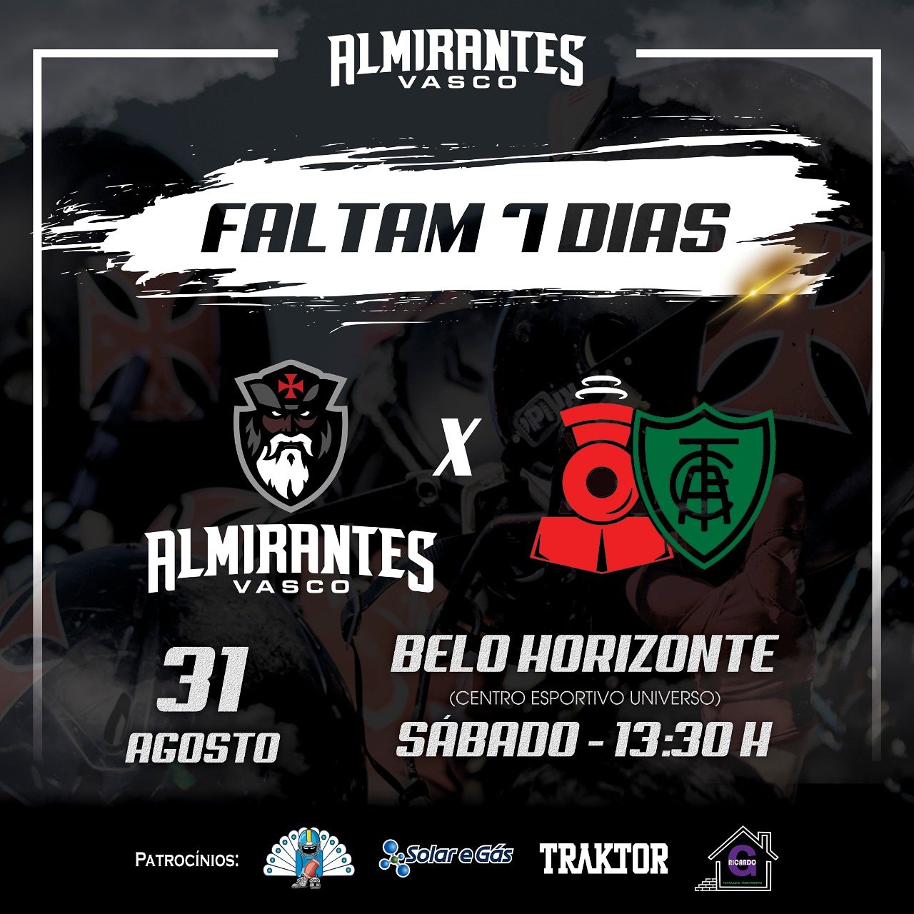 Futebol Americano: Vasco Almirantes enfrenta o América Locomotiva em Belo Horizonte no sábado às 13h30