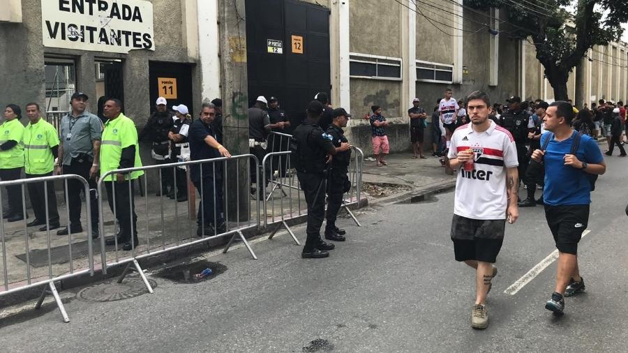 O setor de visitantes está isolado pela Polícia Militar e, apesar da revolta, o clima é tranquilo. Vasco e São Paulo se enfrentam a partir das 16h, em São Januário, pela 16ª rodada do Campeonato Brasileiro.