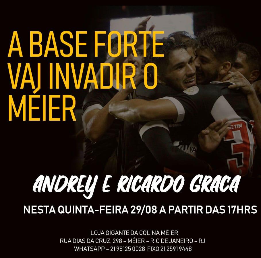 Andrey e Ricardo Graça participarão de tarde de autógrafos da loja oficial do Vasco no Méier nesta 5ª-feira