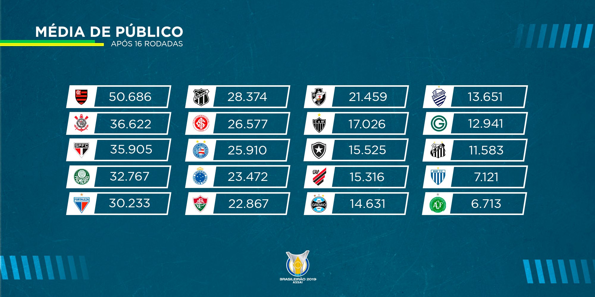 Olha aí a média de público de cada clube no @Brasileirao após mais uma rodada! Como está o seu time? ??