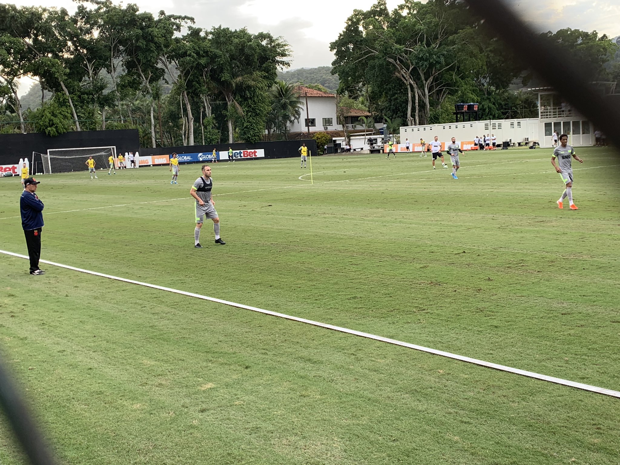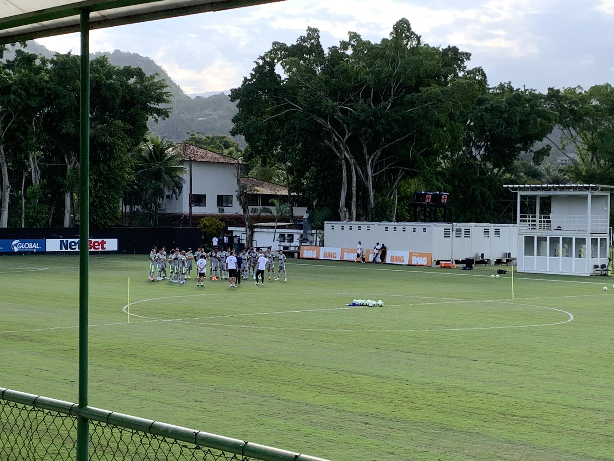 Esse treino que o Vasco faz hoje é para trabalhar a marcação na saída de bola. O time que está atacando, quando perde a bola, não pode deixar o outro passar do meio de campo #gevas