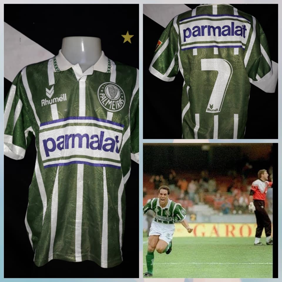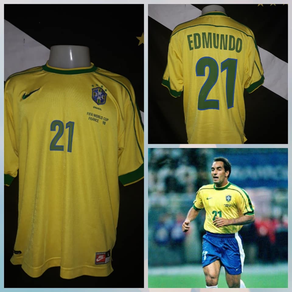 Camisa rarissima, de jogo único contra o América-RN, em 1997, quando Edmundo foi expulso e chamou o árbitro de 'paraíba' | Modelo utilizado em sua passagem pelo Palmeiras, em 1993. | Modelo utilizado na Copa do Mundo de 1998. |